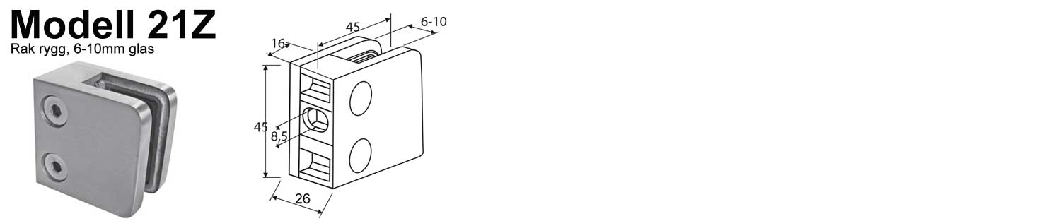 Glasräcken / Klämfästen inomhus / Modell 21 Rå