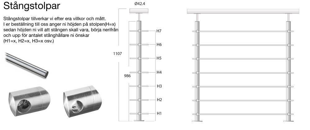 Glasräcken / Runda rostfria stolpar / Stångräcke