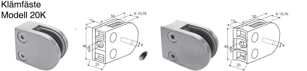 För rundrör. Längd 50, bredd 26, höjd 40mm. För 6-8mm glas. Utförsäljning, gummi finns kvar för 6 - 6,76 - 8