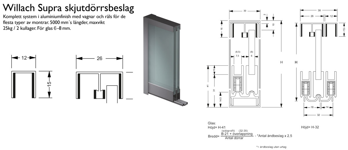 Längd 5000mm, med borstlistClipsskena för 8mm glas