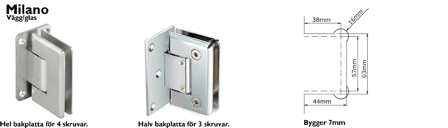 Duschgångjärn vägg/glas justerbara med rundad och fasad kant. Mässing gångjärn till 6-12mm´s glas. självstängande från 15°. Justerbar vinkel. Max 40kg/par. Bygger 7mm Hel bakplatta för 4 skruvar.Duschgångjärn Rostfri finish