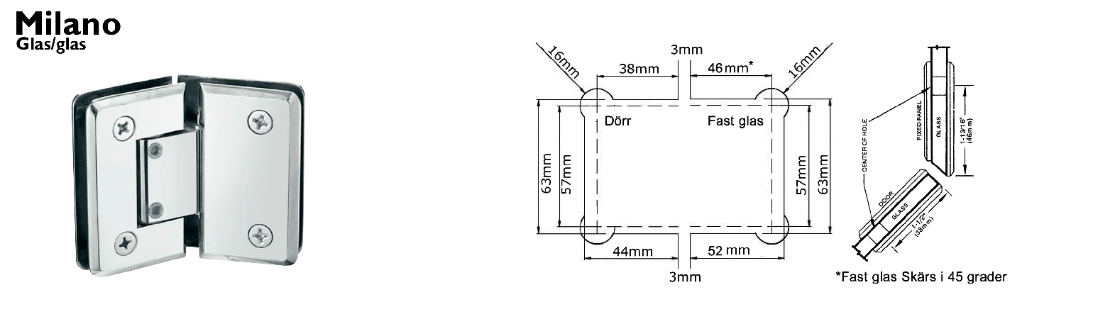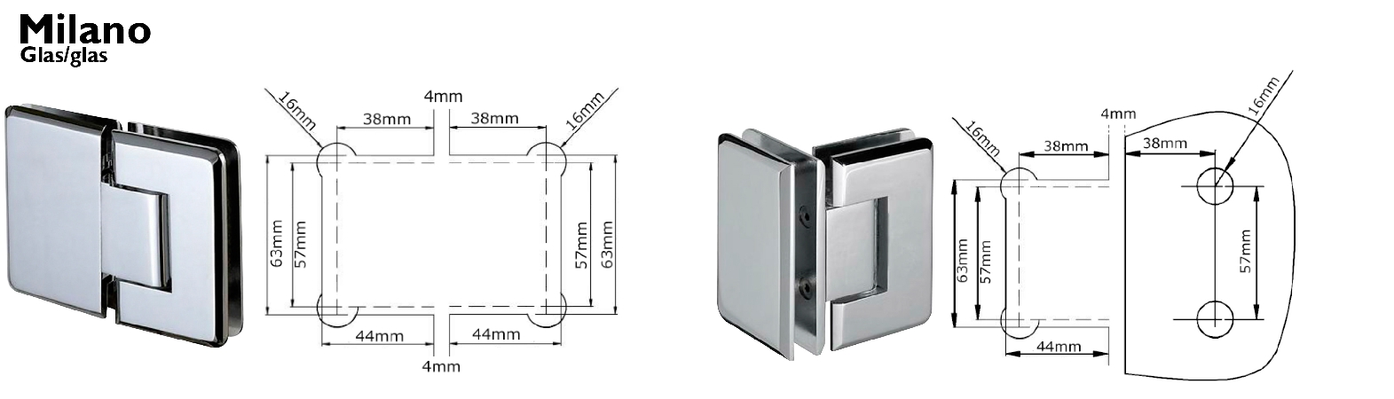 Duschgångjärn glas/glas justerbara med rundad och fasad kant. Mässing gångjärn till 6-12mm´s glas. Självstängande. Justerbar vinkel. Max 40kg/par.Duschgångjärn Alu-finish